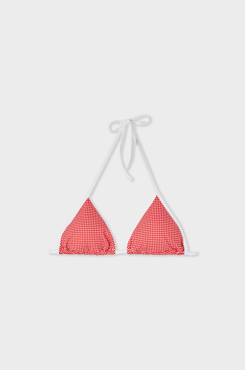 Triangle Bikini Top with Tie Detail and Patterns;${refinementColor}