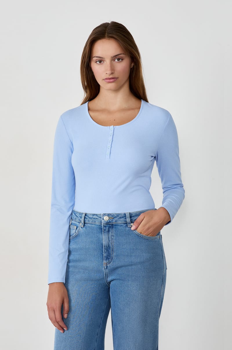 Basique intemporel, ce t-shirt manches longues est muni d'un col rond et d'une patte de boutonnage. Il se port...