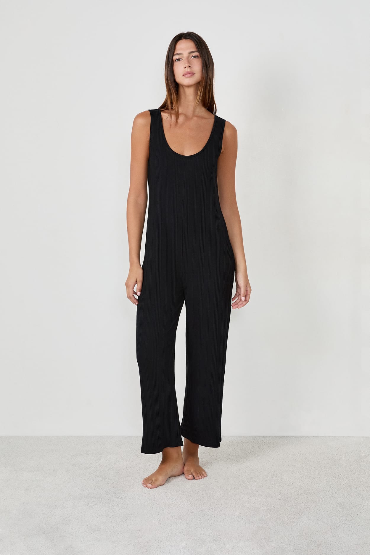 The cotton jumpsuit is ideal for everyday wear. With its soft ribbed knit and round neck, it stands out as a classic, chic and casual piece in your nightwear wardrobe.