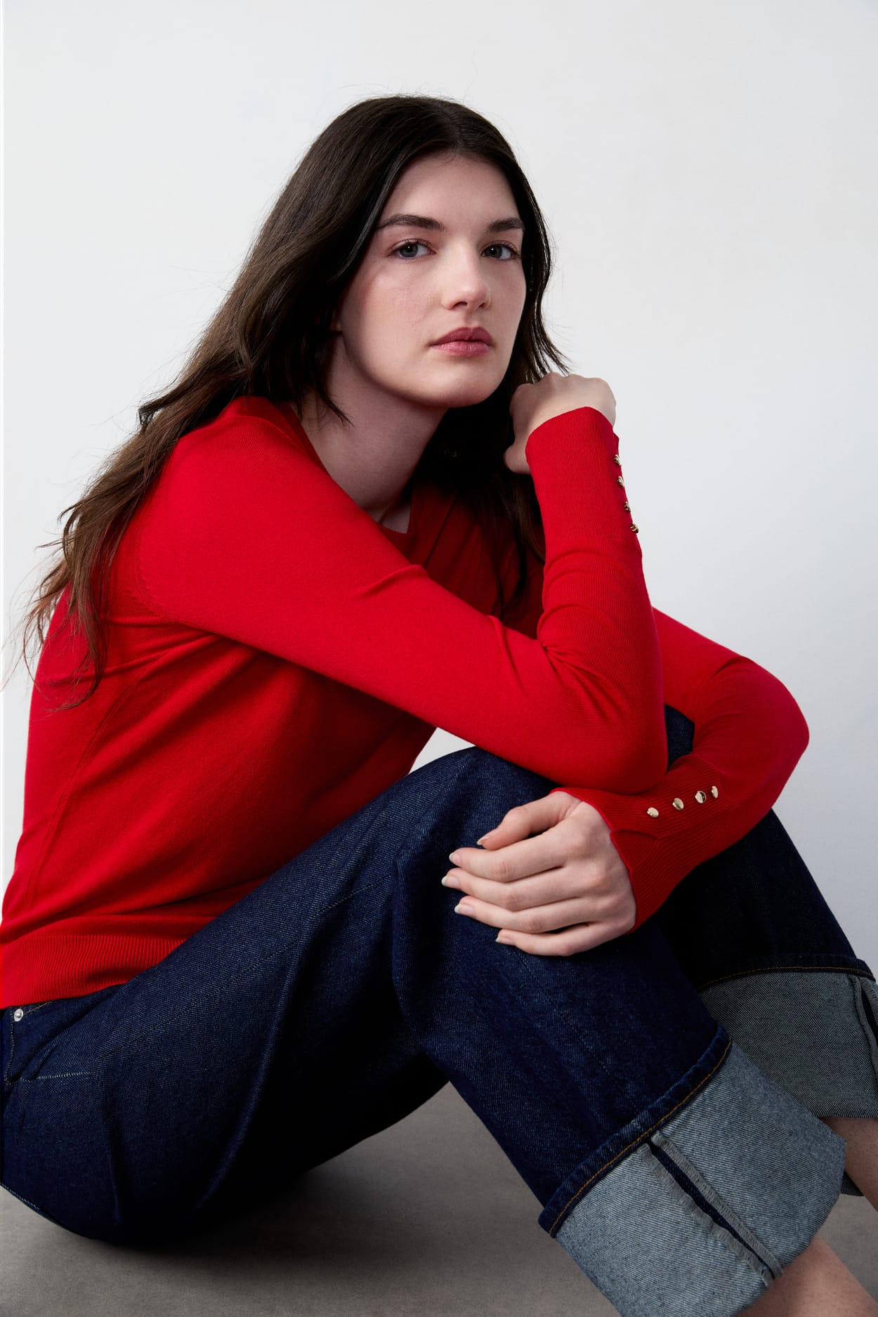 An essential in your wardrobe, this long-sleeved sweater with delicately buttoned sleeves and a round neck offers a warm...