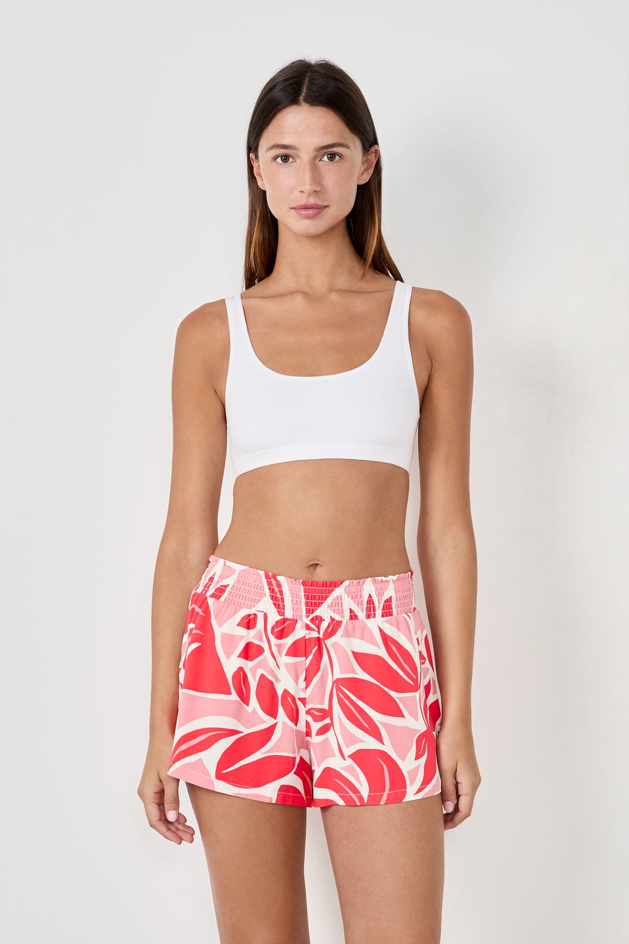 The silhouette becomes more exotic than ever with the prints on these shorts, inspired by summer motifs. Smocked at the waist, they perfectly hug your curves for nights of complete comfort.