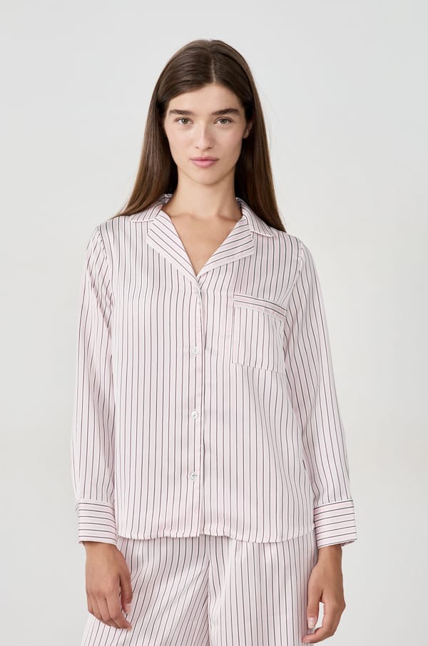 Short-sleeved silk pyjama shirt;${refinementColor}