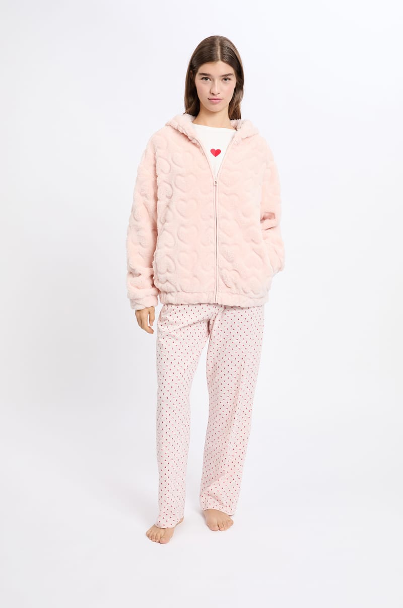 This 3-piece pyjama set features a heart print. Mini or maxi, it includes a short-sleeved cotton t-shirt, flowing trouse...
