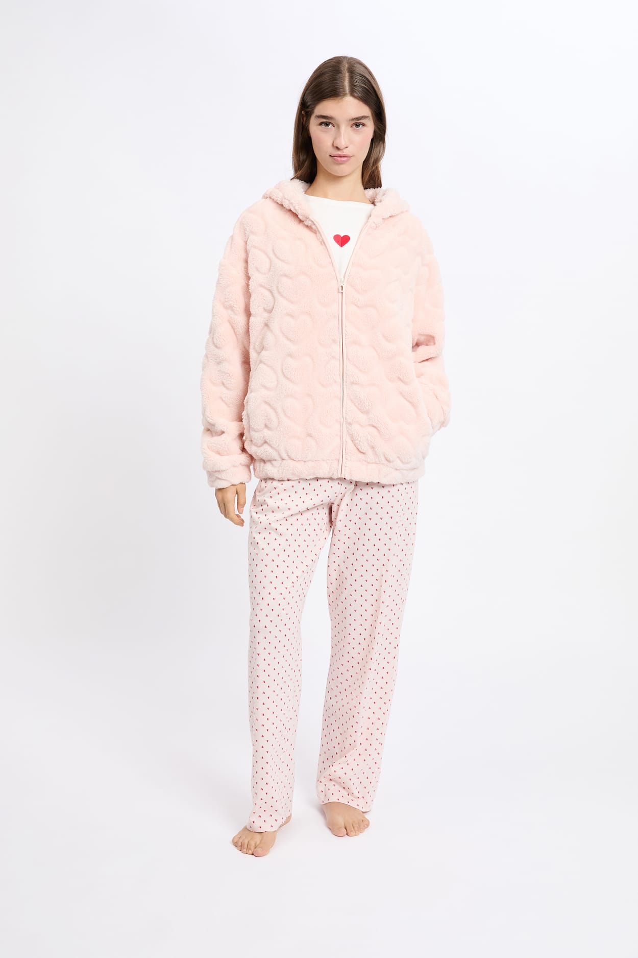 3-Piece Pyjama Set with Heart Print in Cotton;${refinementColor}