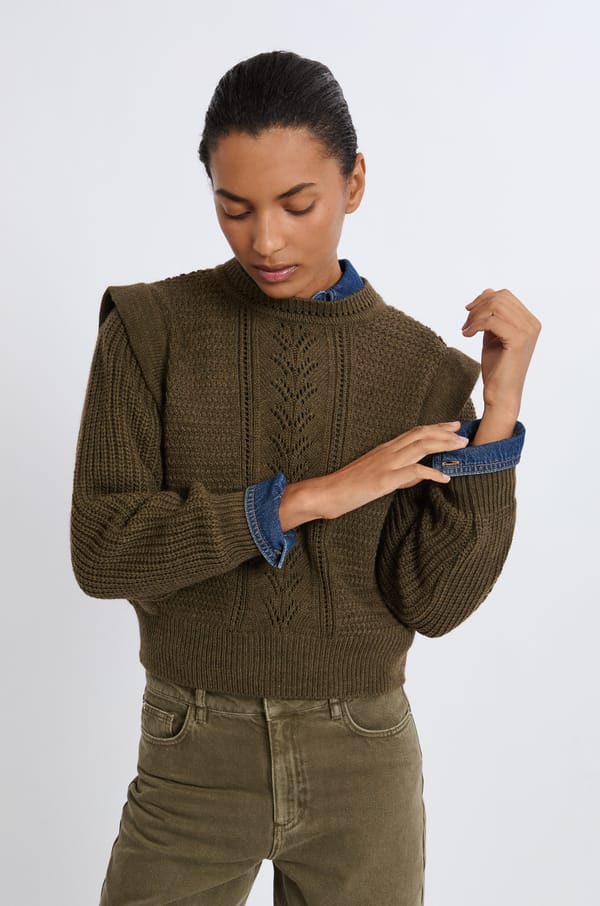 Sweater with Shoulder Pads with Wool;${refinementColor}