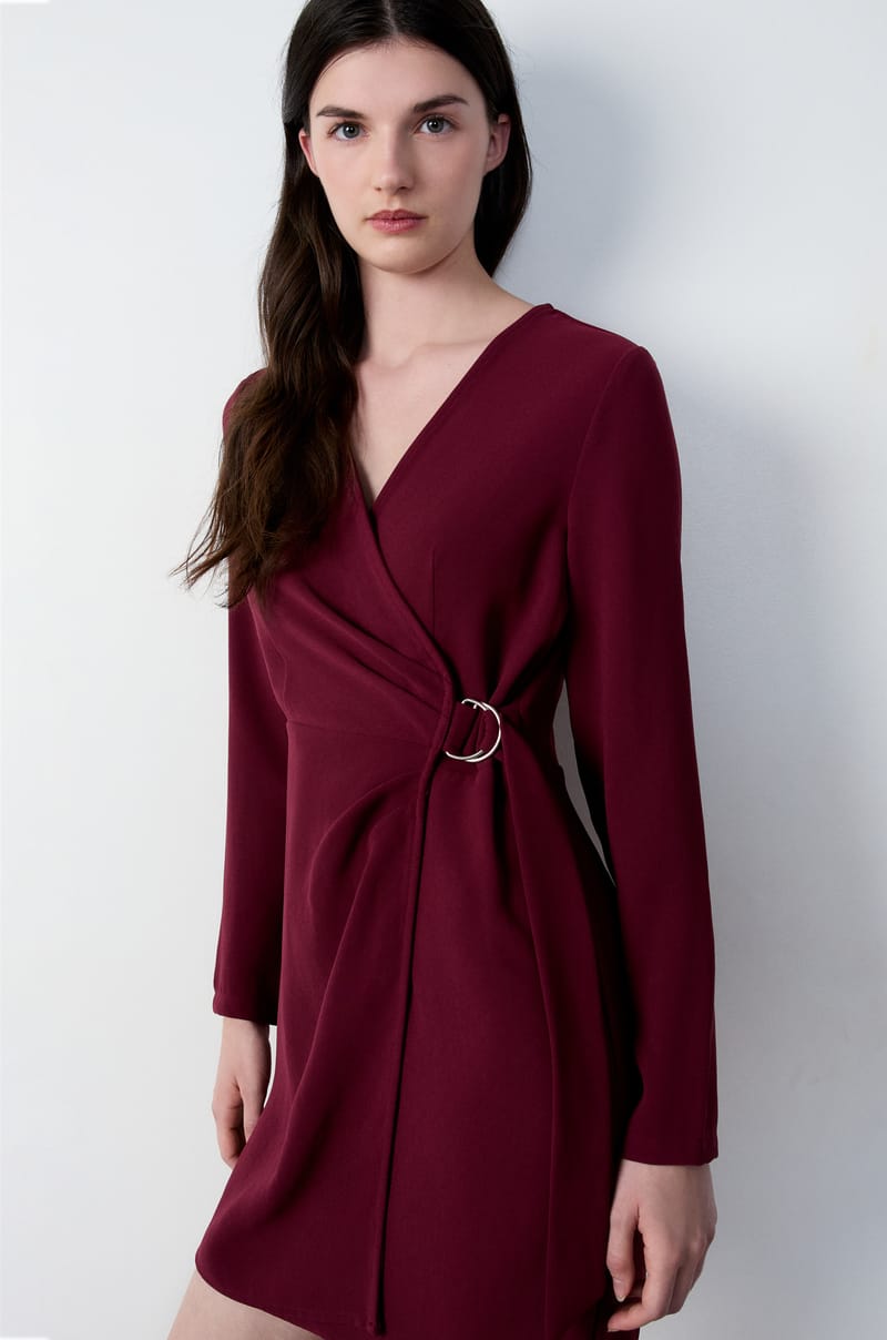 This short wrap dress, with its V-neck and long sleeves, offers a light and feminine look. Perfect for chic and refined ...