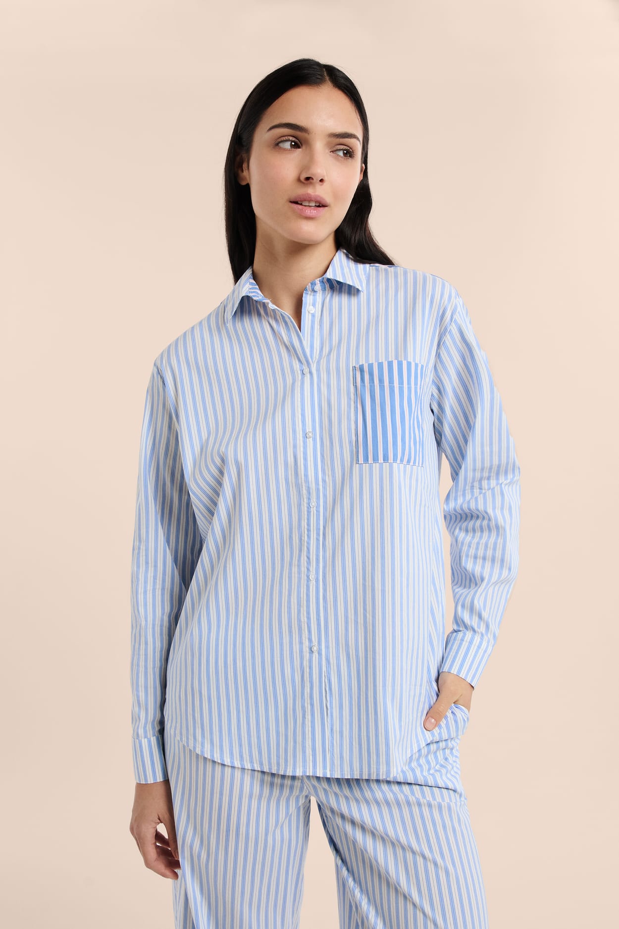 Confectionnée majoritairement en coton, cette chemise de pyjama manches longues s'habille de rayures. Portée en oversize...