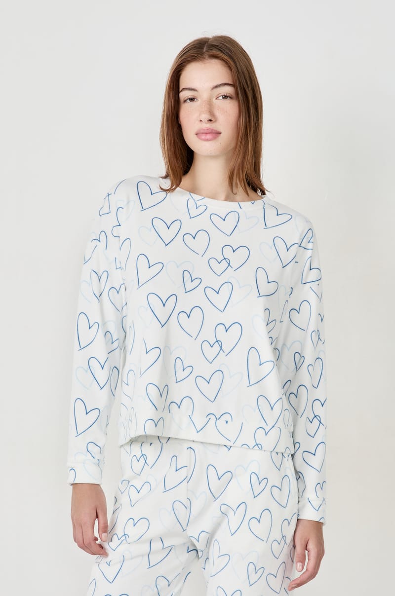 Doux et réconfortant, ce sweat adopte une coupe large. Muni de manches longues et d'un col rond, il est réhaussé d'un imprimé cœurs en all-over pour une note tendre.