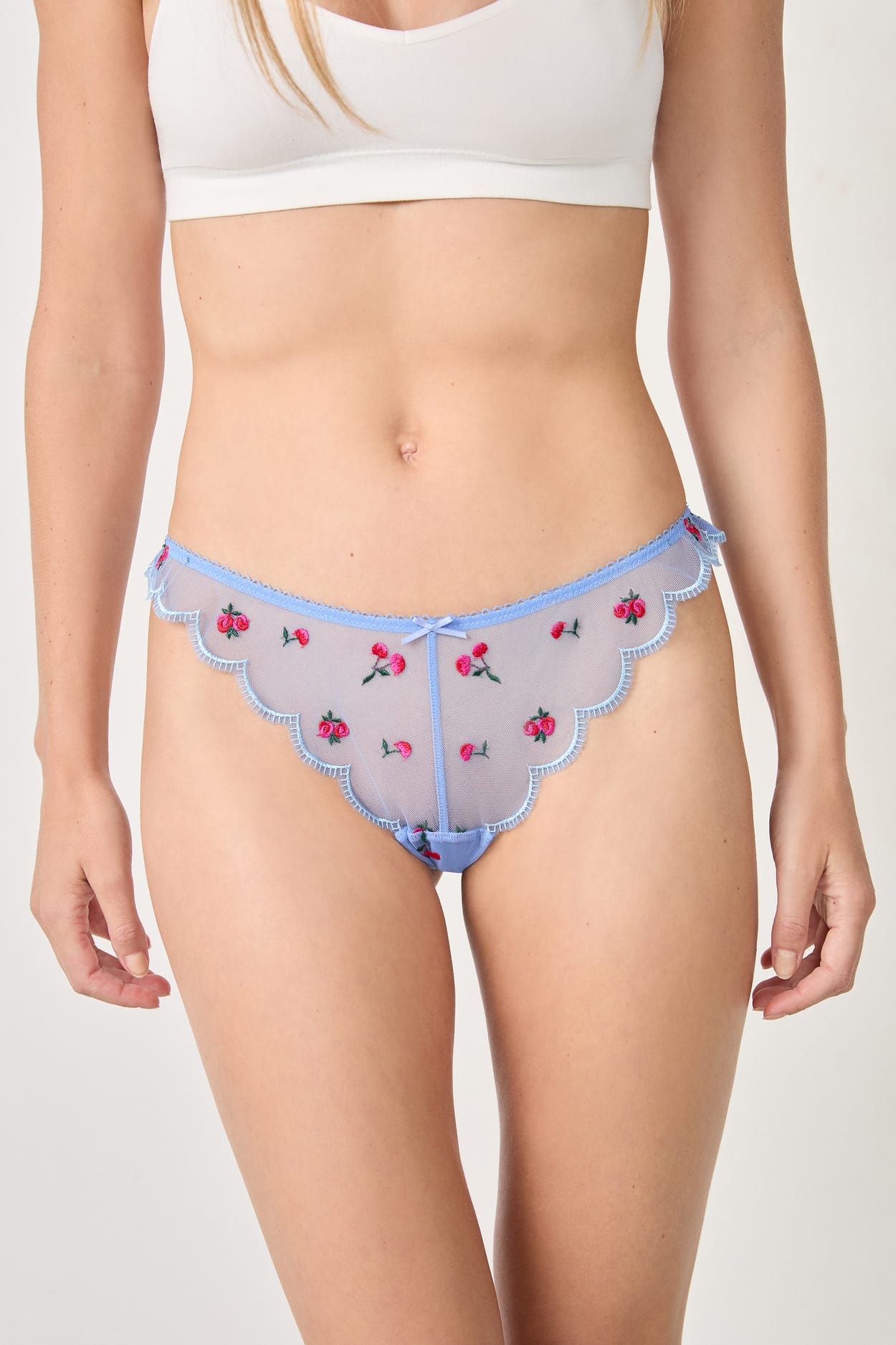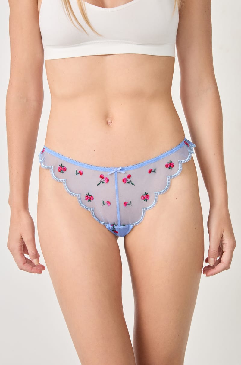 Raffiné et subtil, ce tanga en tulle arbore de délicates broderies fleuries. Il est muni de bords festonnés et d'un...