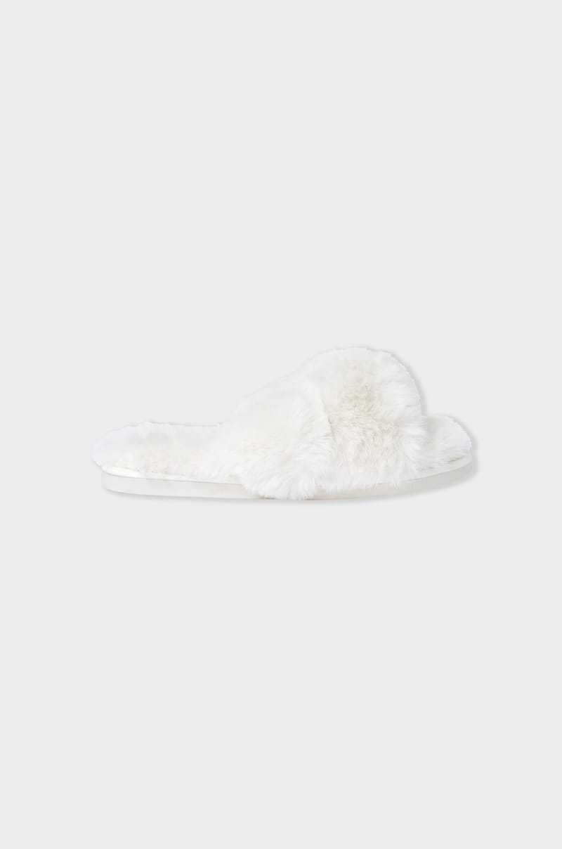 With their faux fur, these flip-flop slippers combine style and comfort....