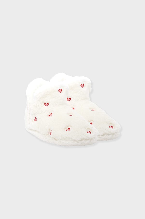 Heart Pattern Slippers in Faux Fur;${refinementColor}