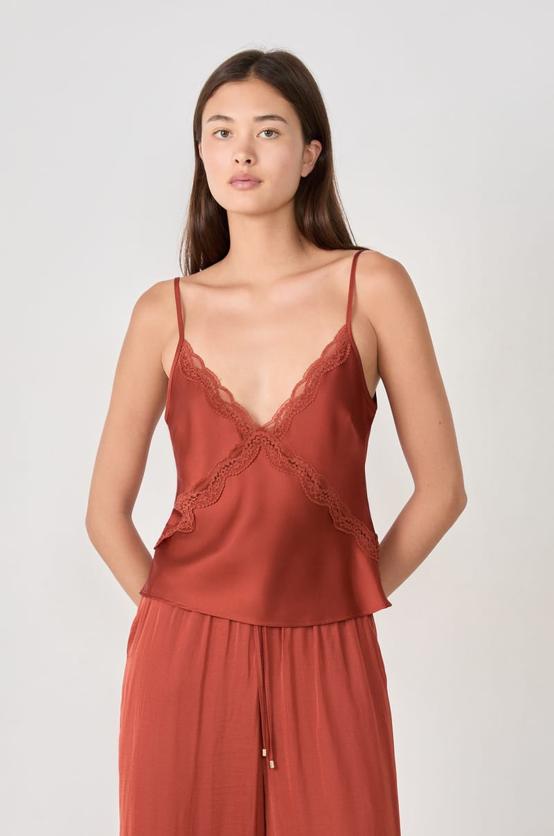 Idéal pour un look féminin et sensuel, ce caraco offre un effet satiné délicat. Il est muni d'un décolleté en V et d'une dentelle transparente et légère croisée.