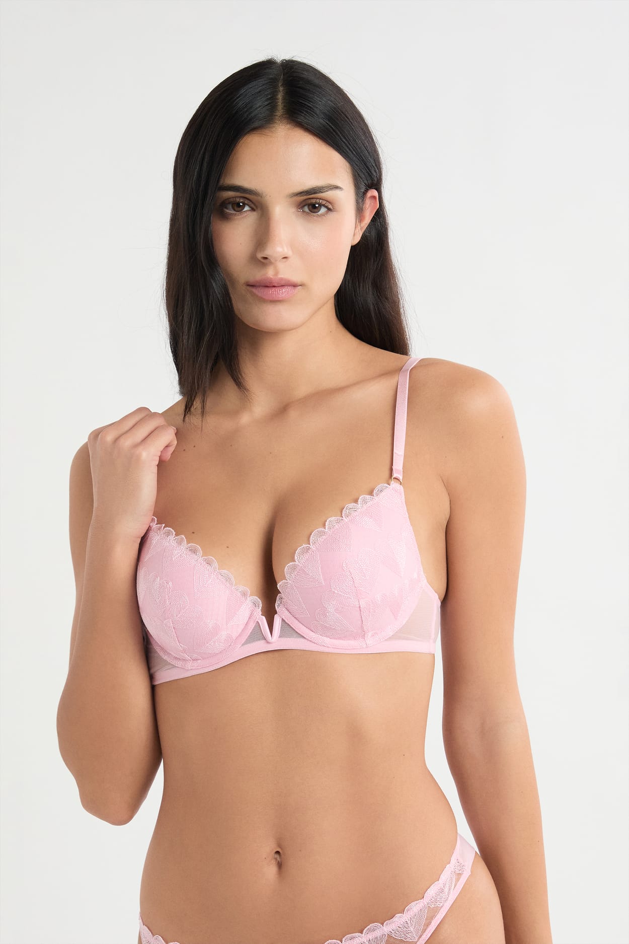 Soutien-gorge N.2 - Push-up plongeant à broderie cœurs