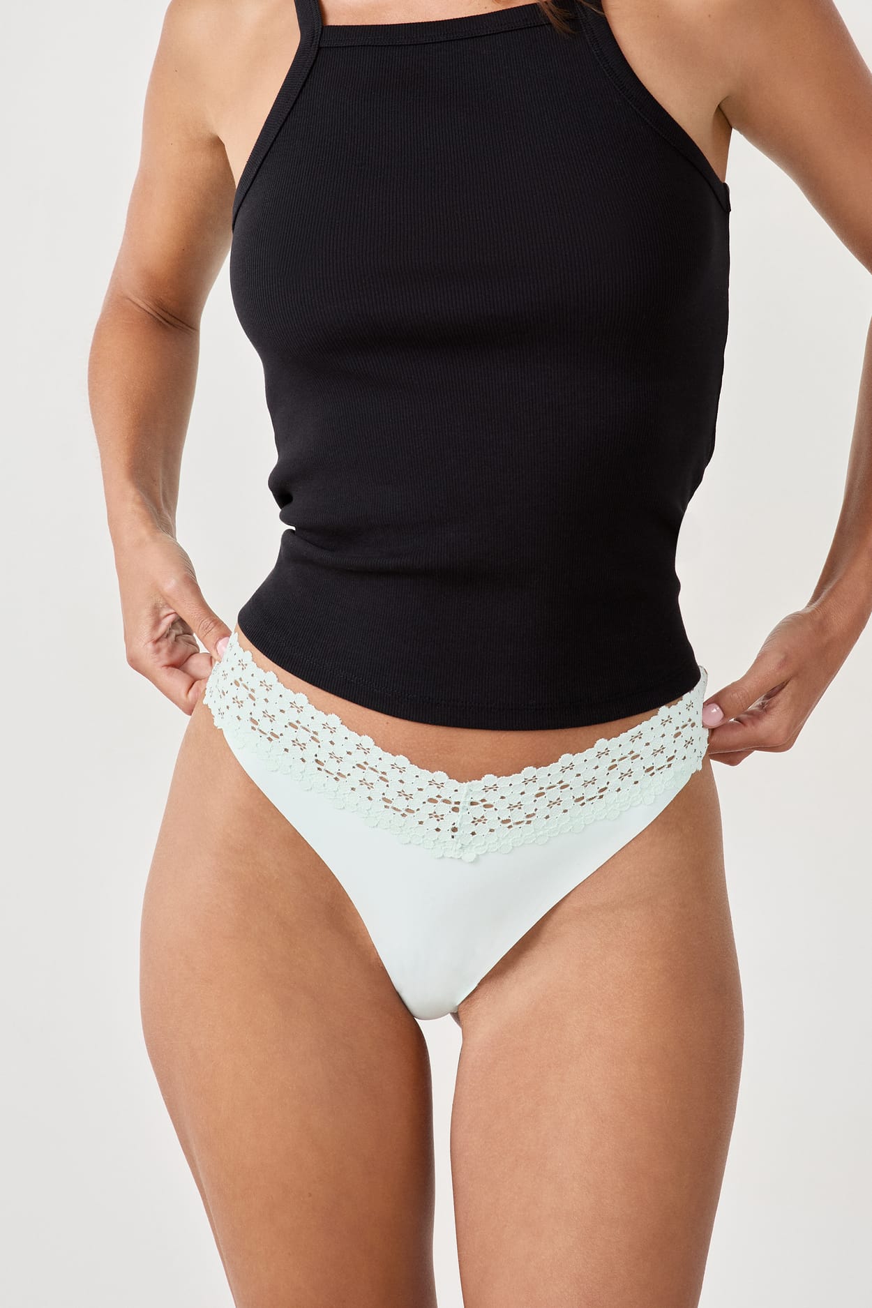 Delicately edged with lace, this microfibre tanga is ideal for everyday wear....