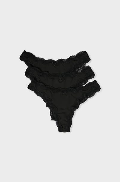 Pack of 3 Cotton and Lace Thongs;${refinementColor}