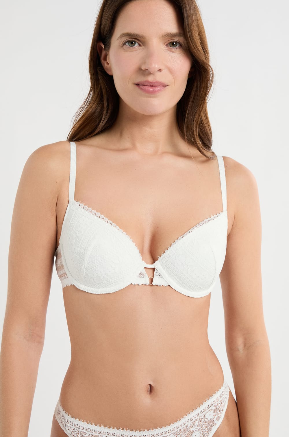 The new everyday lingerie, both sexy and comfortable.The eyelash effect lace of this bra combines floral motifs and grap...