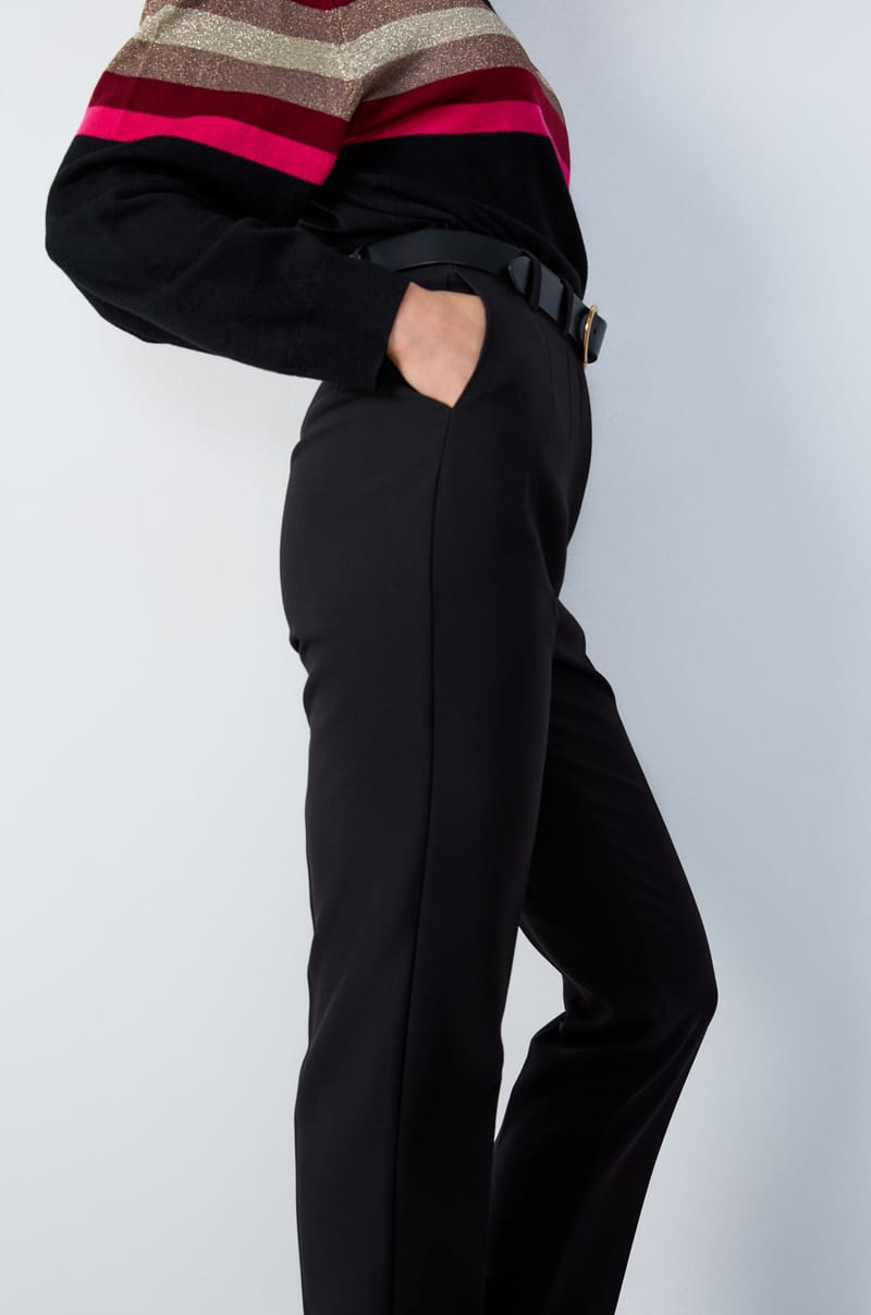 Pair it with a blouse, a soft knit, or a t-shirt tucked under a blazer jacket: these trousers adapt to your daily life, adding a touch of elegance.