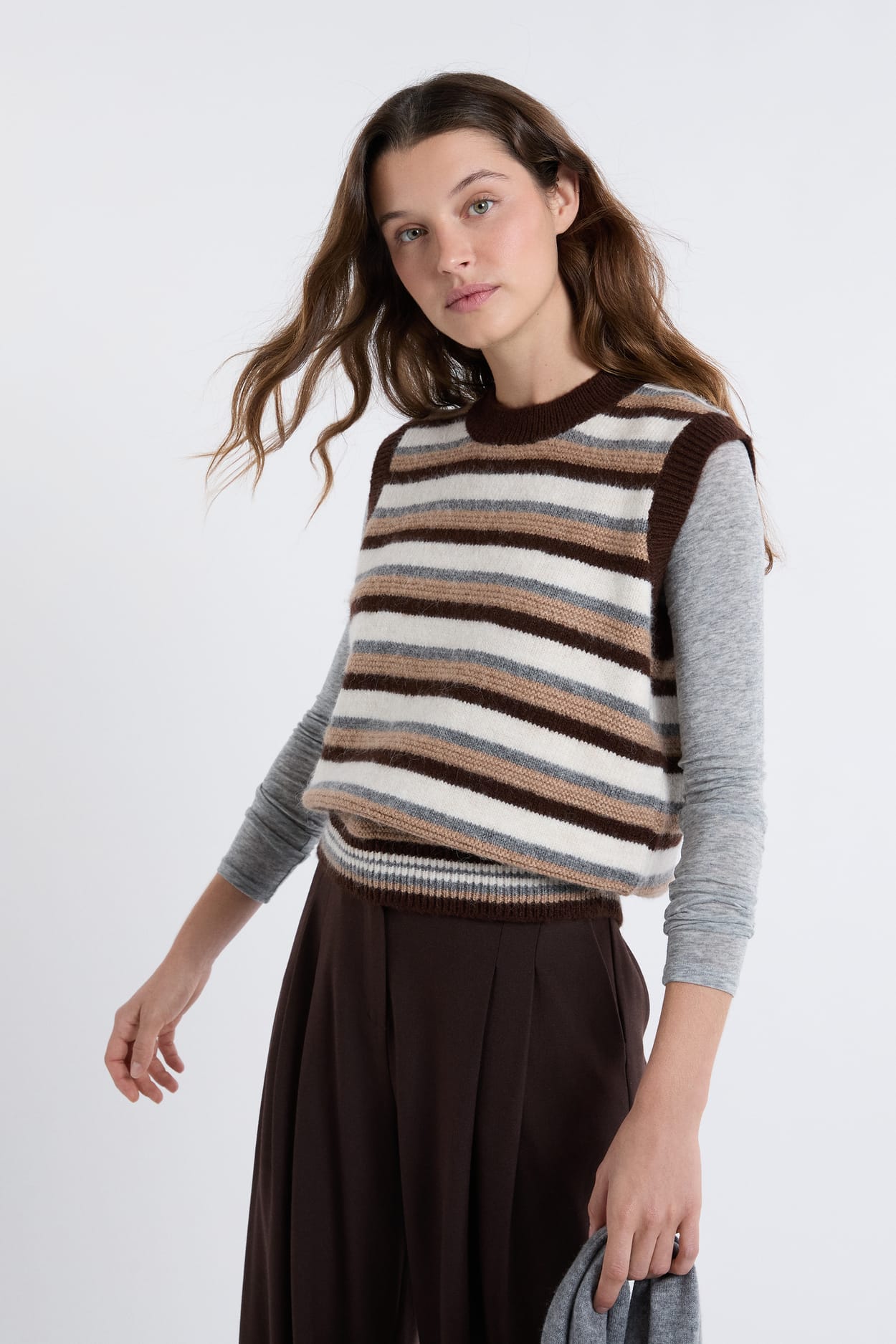 Imprimé star de la saison, ce pull sans manches s'habille de rayures. Il se porte seul ou en superposition....