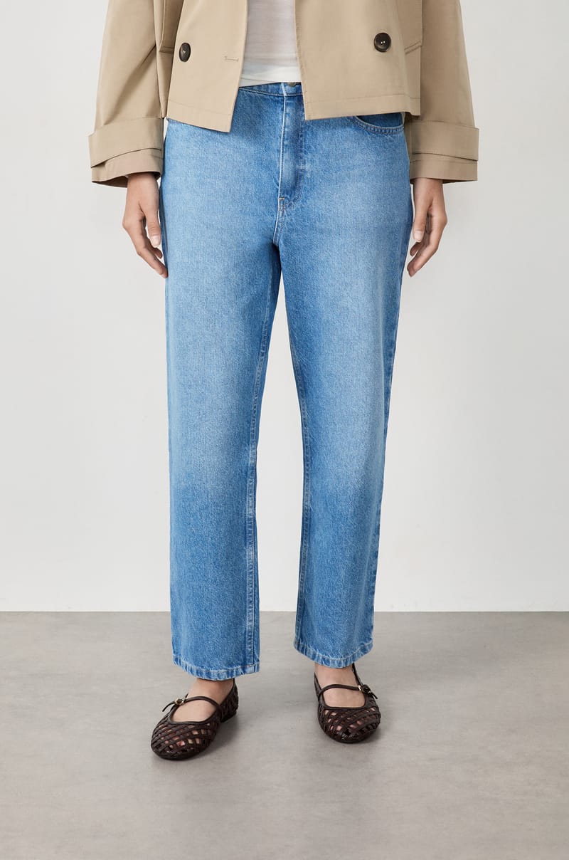 Ce jean en coton arbore une coupe droite pour allonger la silhouette. Il est menu d'un bouton métallique argenté. A...