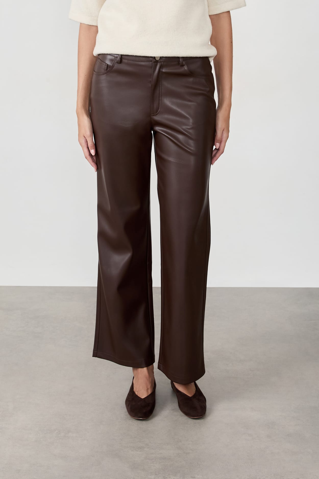 These wide-cut trousers are the must-have of the season. They are reimagined with a faux leather effect offering charact...