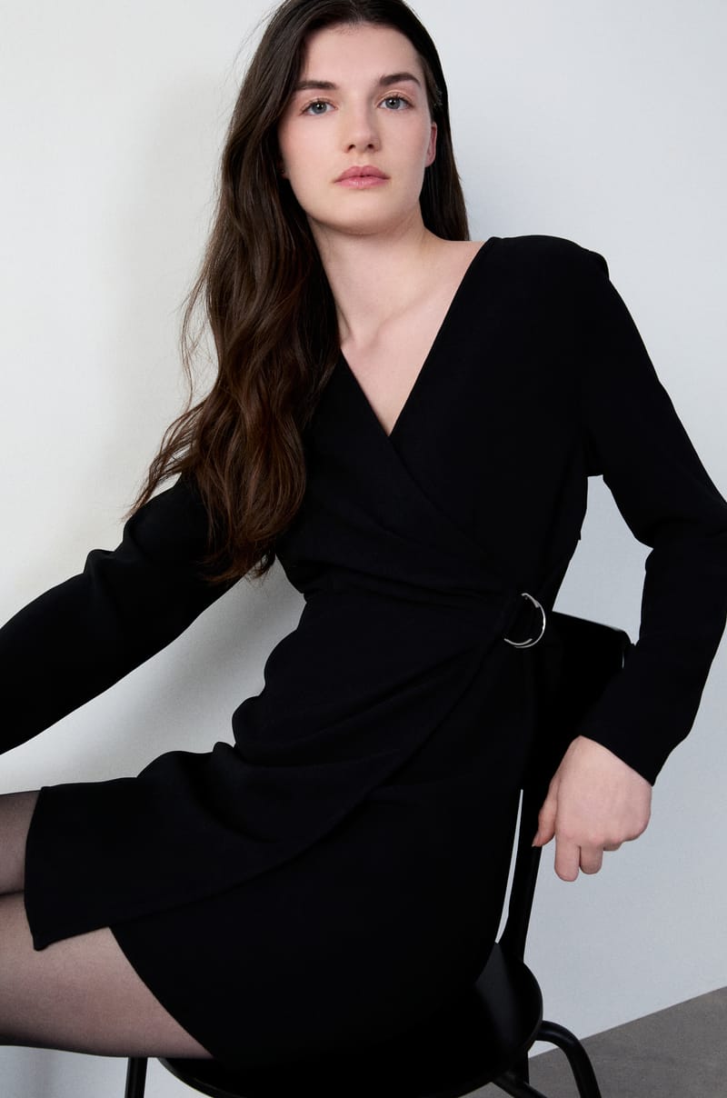 This short wrap dress, with its V-neck and long sleeves, offers a light and feminine look. Perfect for chic and refined ...