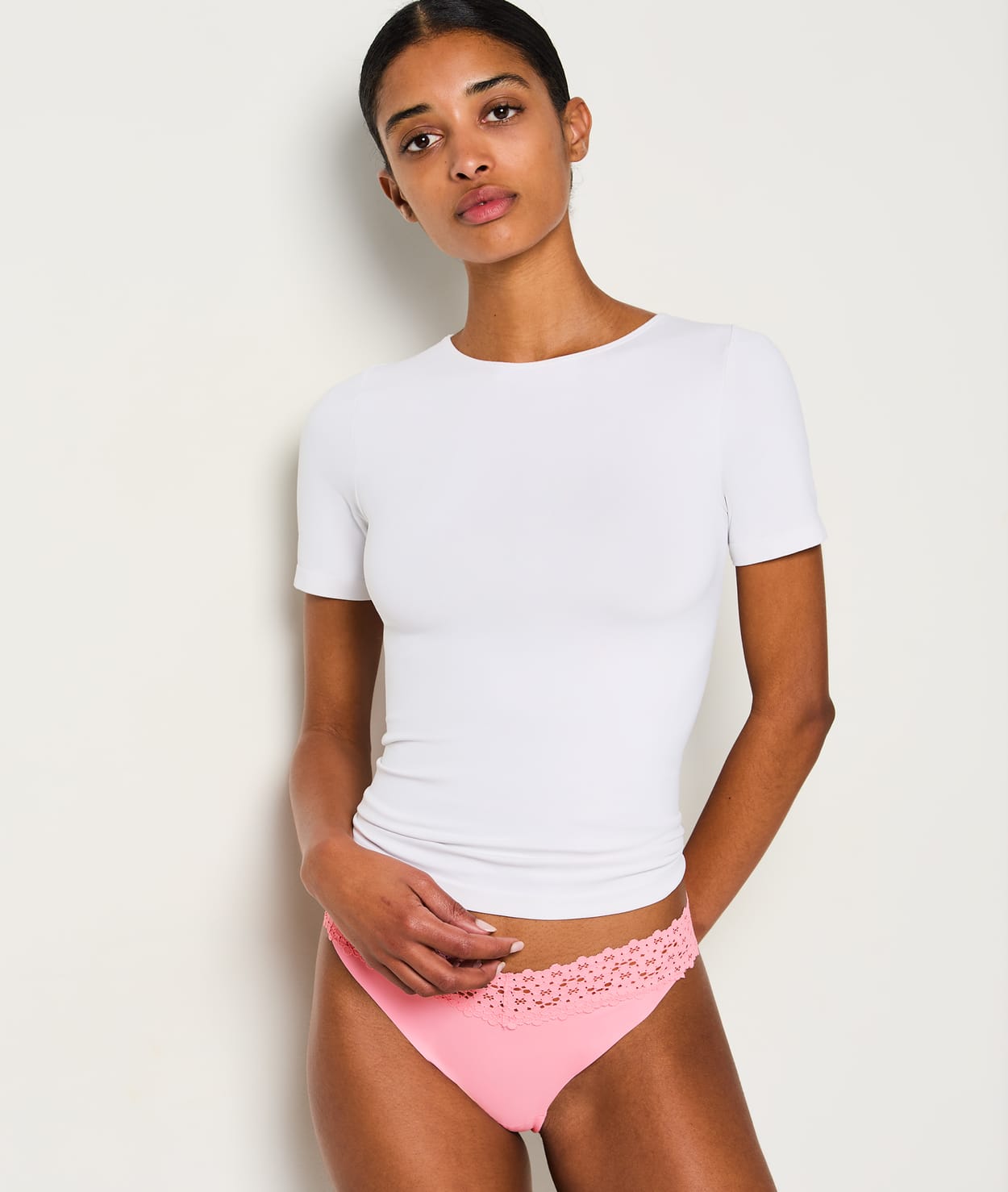 V-shape Microfibre and Lace Tanga;${refinementColor}