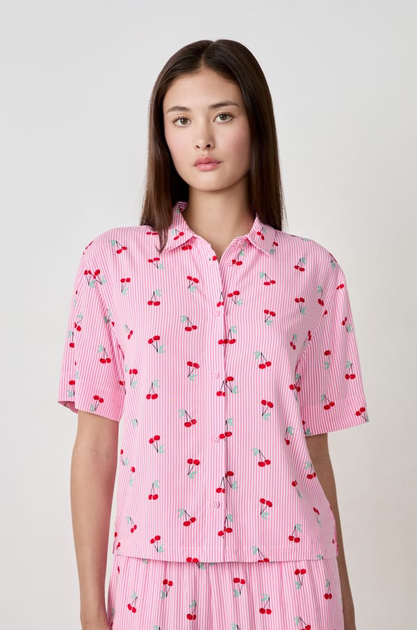 Camisa de pijama de manga corta estampada;${refinementColor}