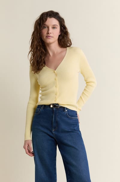 • Pull cardigan manches longues en maille côtelée;${refinementColor}
