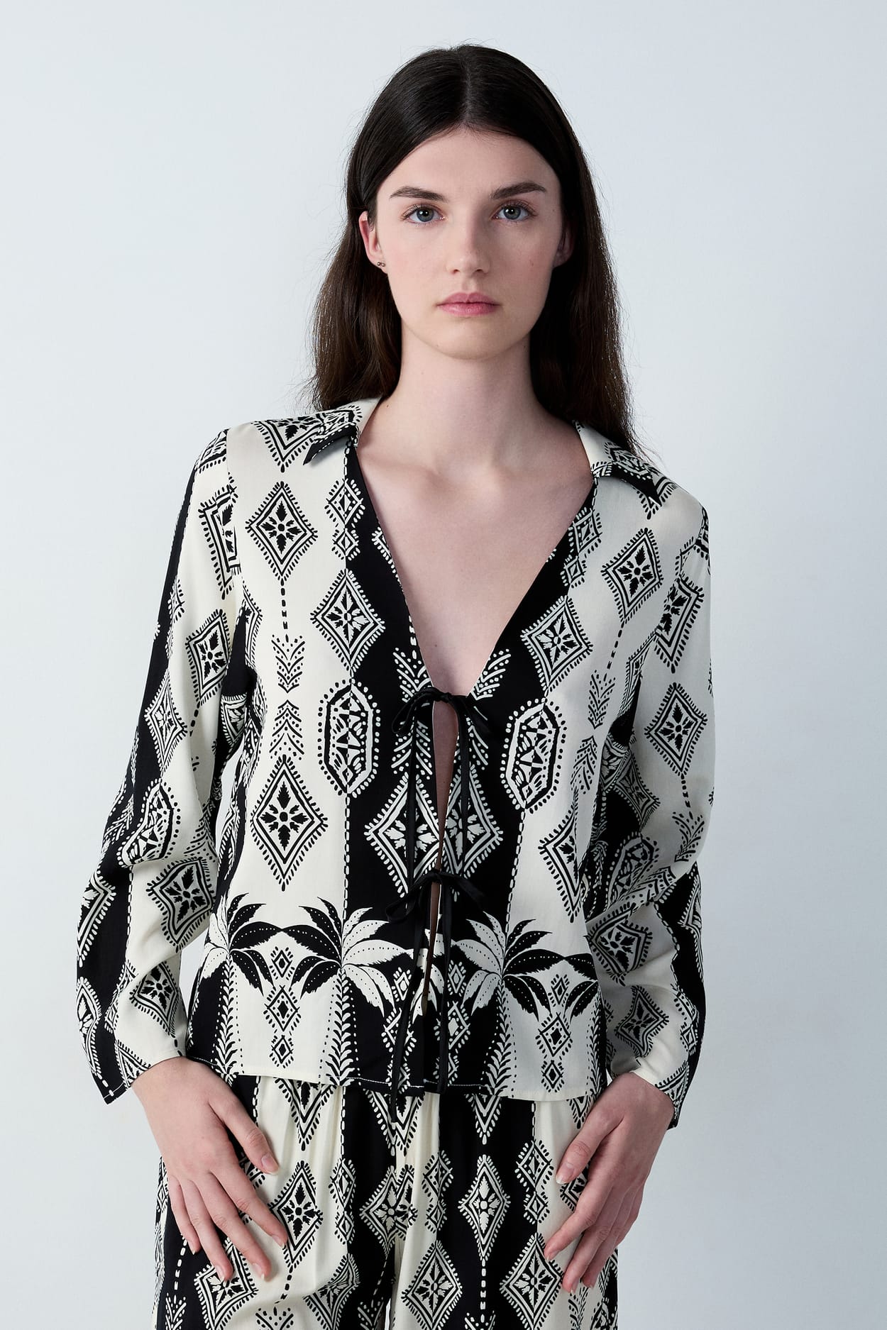 Con su tejido ligero, este picardías es esencial para las noches más acogedoras. Sus exuberantes motivos y sus cierres de corbata lo convierten en la combinación perfecta de comodidad y estilo. Añade un pantalón a juego para un look total.