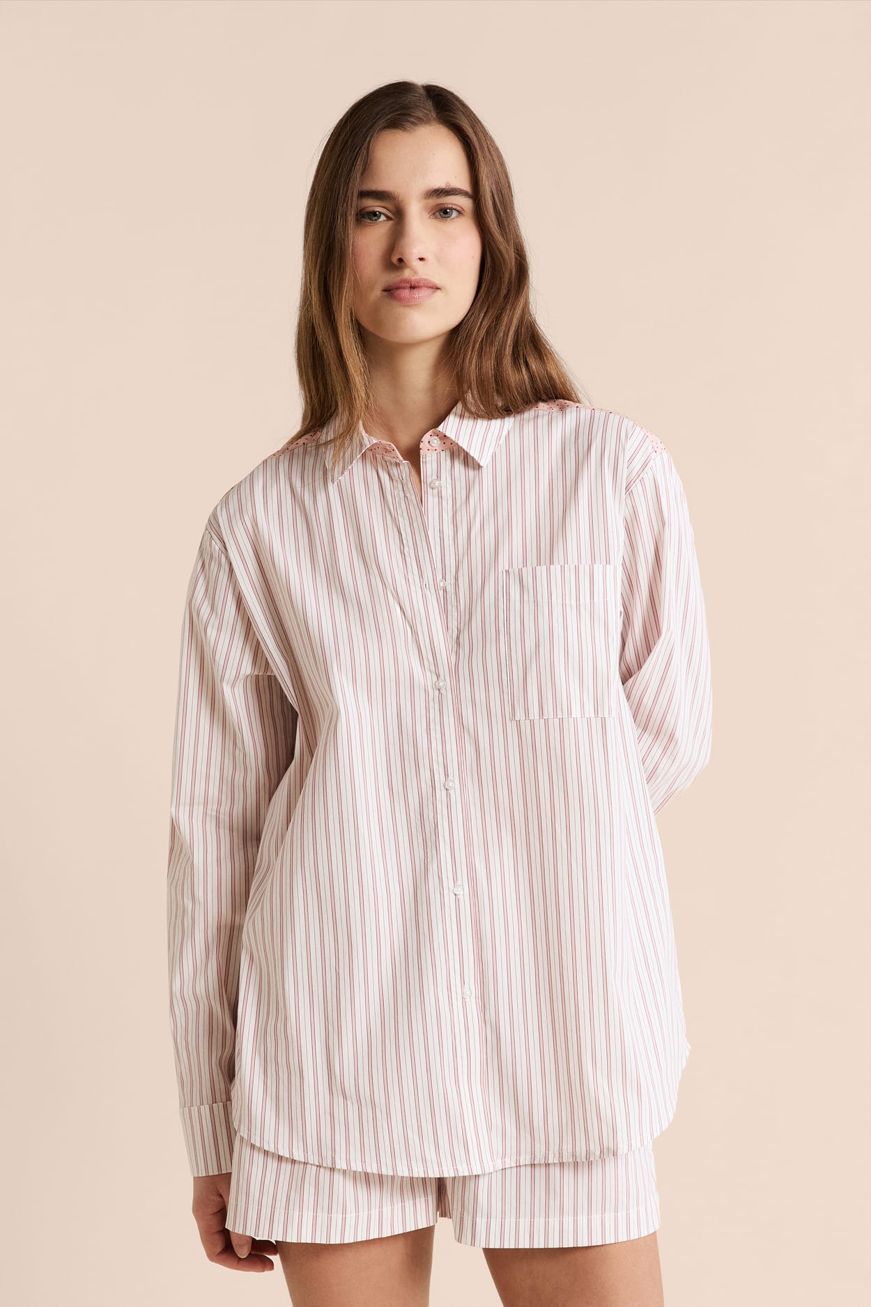 100 % comodidad y elegancia, esta camisa de pijama a rayas de algodón garantiza una agradable suavidad para unas noches tranquilas. Con sus mangas largas y su cuello camisero, combina estilo y practicidad para el día a día.