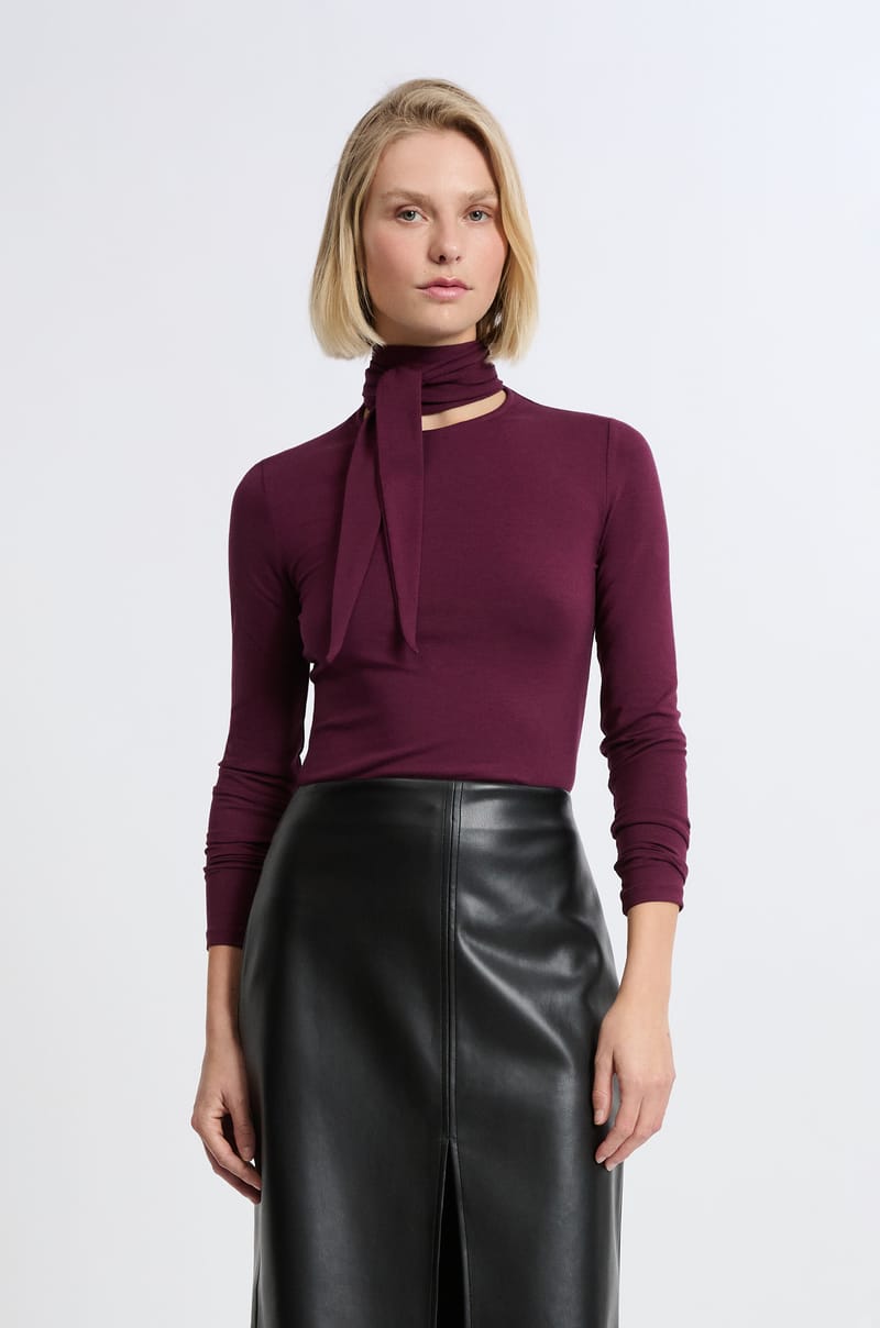 Chic et élégant, ce t-shirt manches longues offre fluidité et légèreté. Il se distingue par son col à nouer devant ou à l'arrière façon foulard selon vos envies