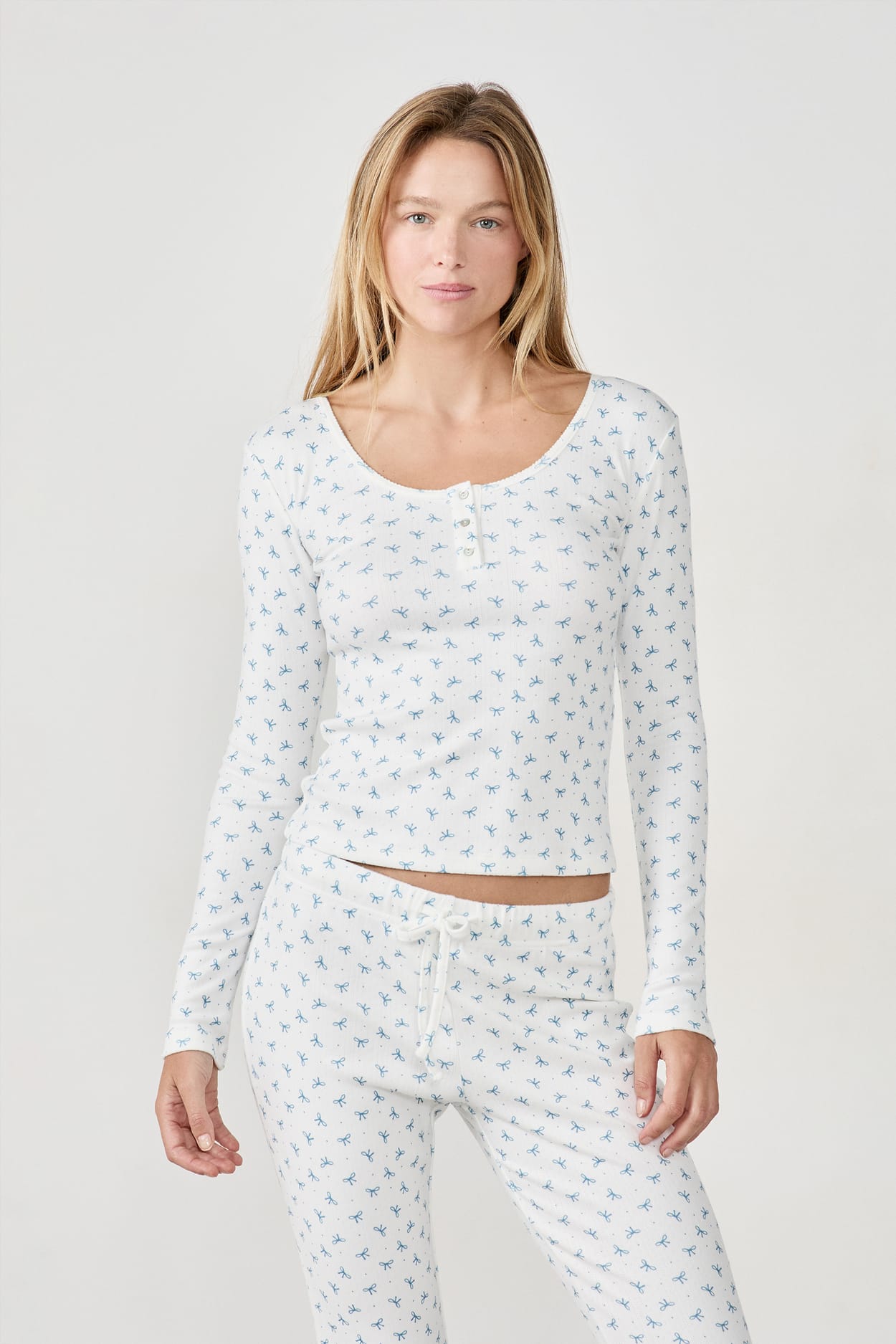 Confectionné en matière douce, ce t-shirt de pyjama opte pour une coupe près du corps. Il s'associe avec le pantalon coordonné.