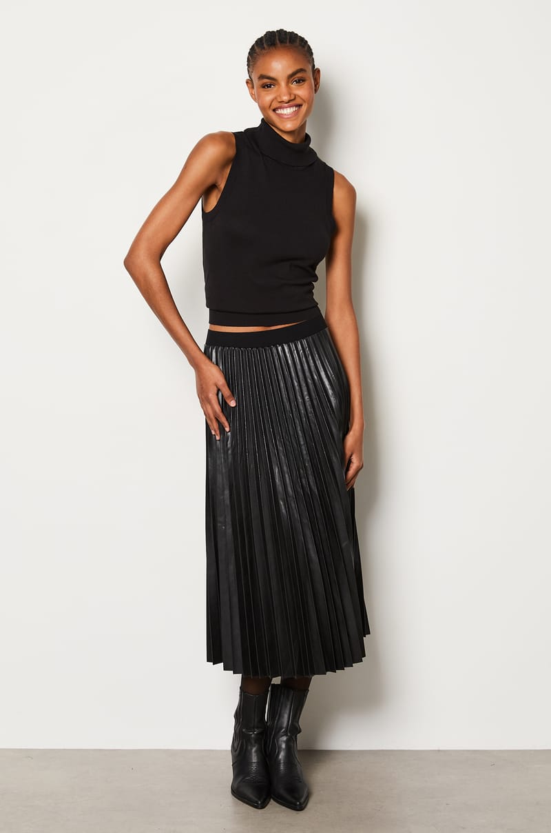 Delicadamente plisada, opta por esta falda larga de piel sintética. Versátil, es una pieza clave para looks chic y de tendencia.
