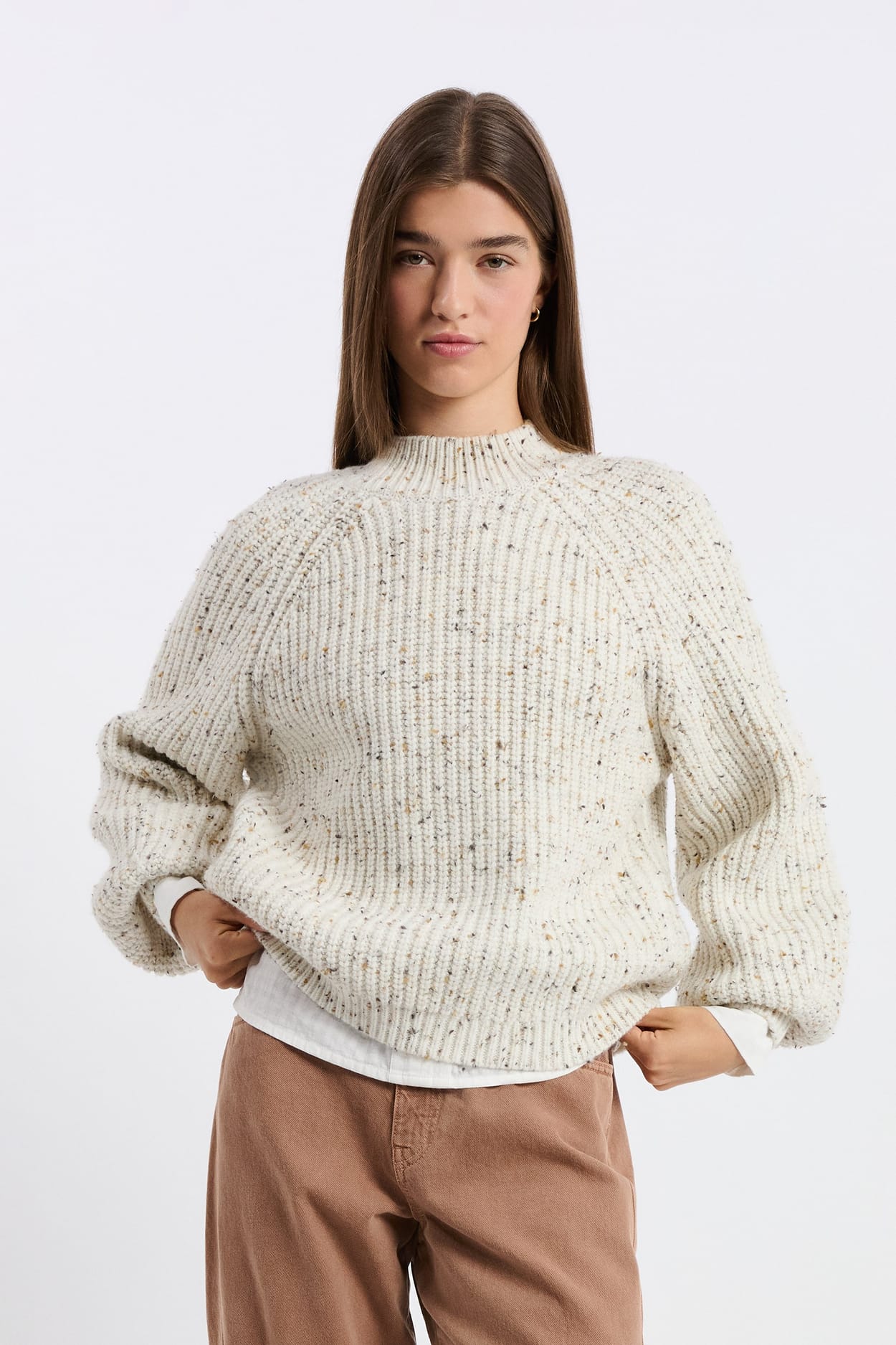 Basique intemporel du vestiaire, ce pull manches longues est confectionné en maille. Il est revisité avec un motif tacheté.
