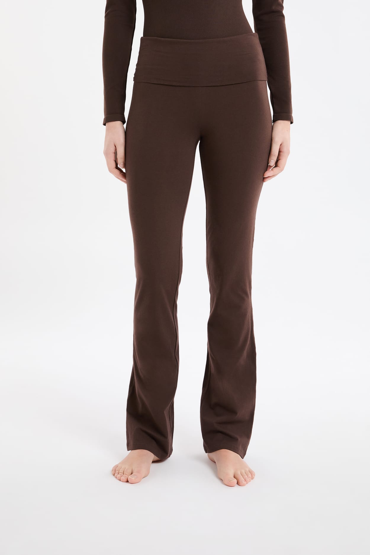 Confectionné en coton, ce legging est muni d'une bande large élastique à la taille. Il offre une coupe évasée pour sublimer les jambes.