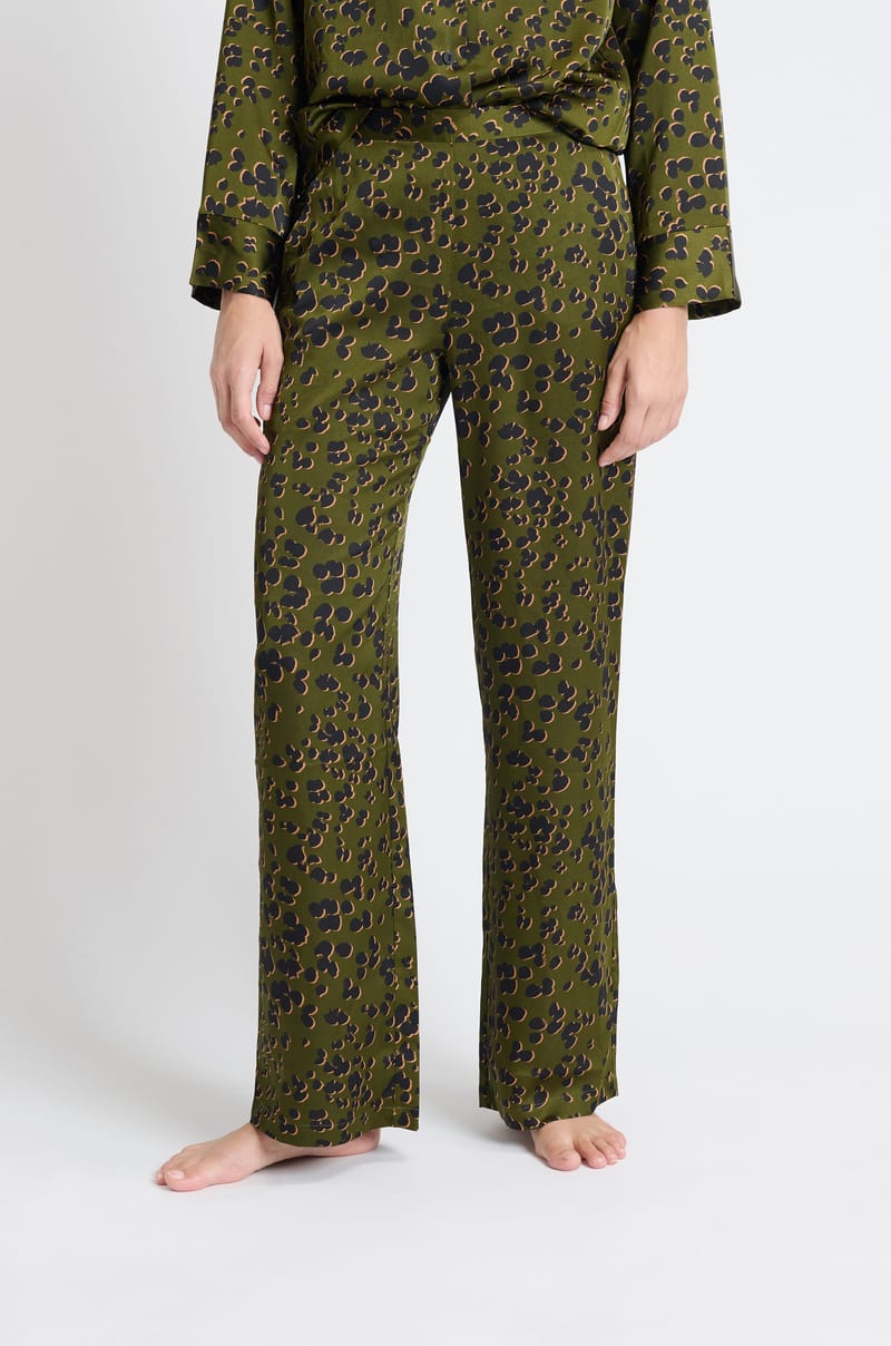 Ce pantalon de pyjama joue la carte de l'originalité et de l'audace avec son motif tacheté. Il s'associe avec la chemise coordonnée.