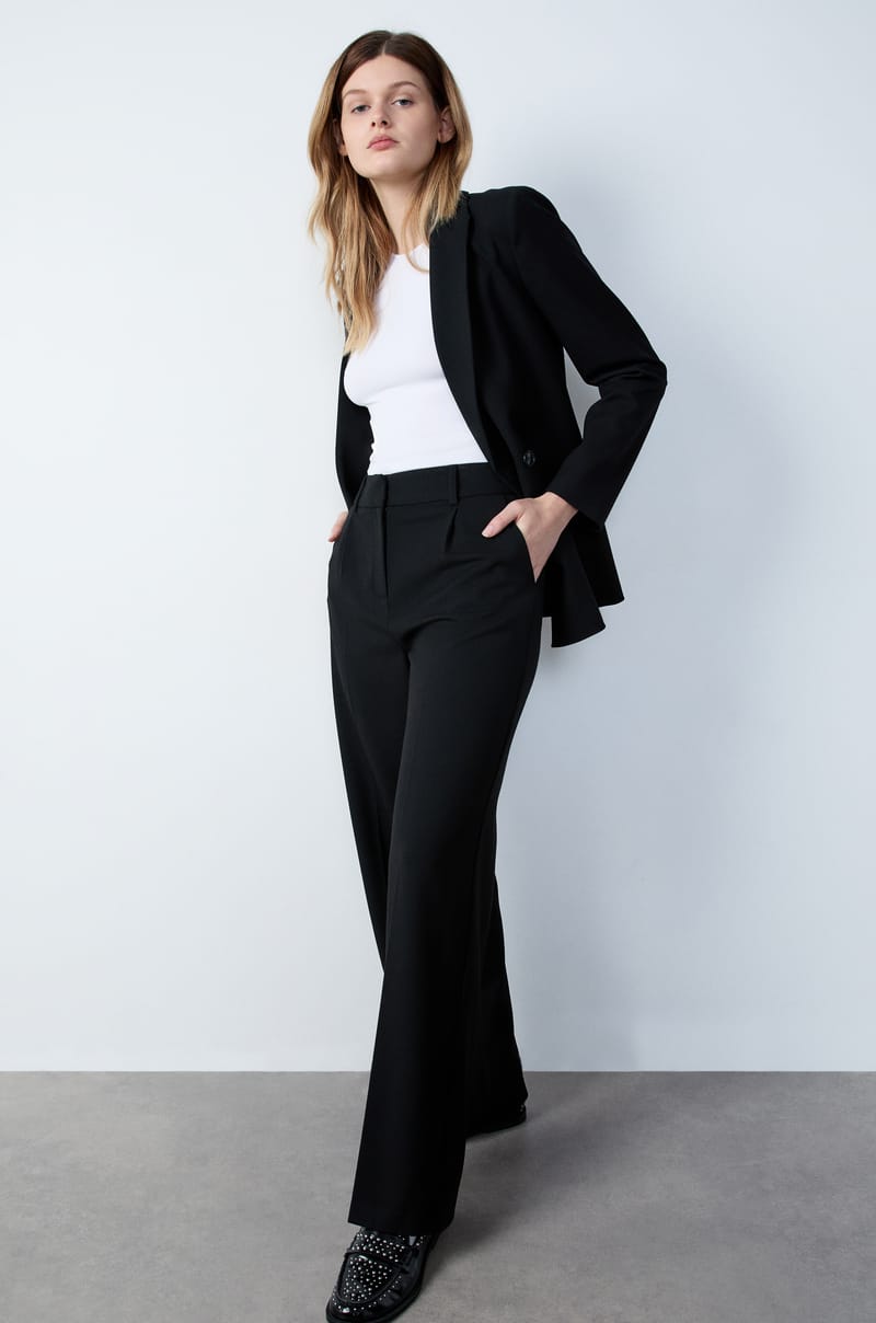 Los Pantalones de traje son sin duda la pieza clave de un look chic. Equipados con trabillas, tienen un corte de pernera ancha y crean una silueta elegante y estilizada.