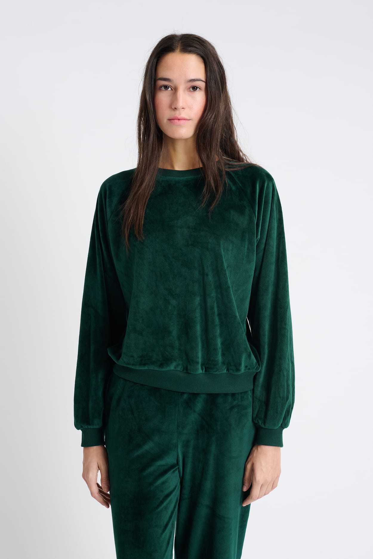 Idéal pour des nuits douces et réconfortantes, ce sweatshirt de pyjama opte pour un effet velours. Doux et chaud, il est muni d'un col rond et de manches longues.