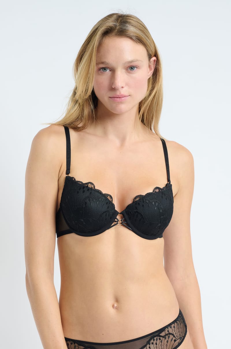 Ce soutien-gorge muni de coques fines galbe naturellement la poitrine. Il se pare de broderies délicates et de bords festonnés.