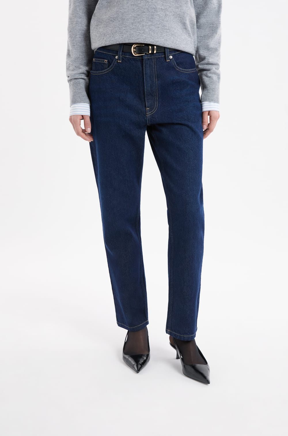 Confectionné en coton, ce pantalon denim opte pour une coupe droite. Il est muni de poches plaquées.