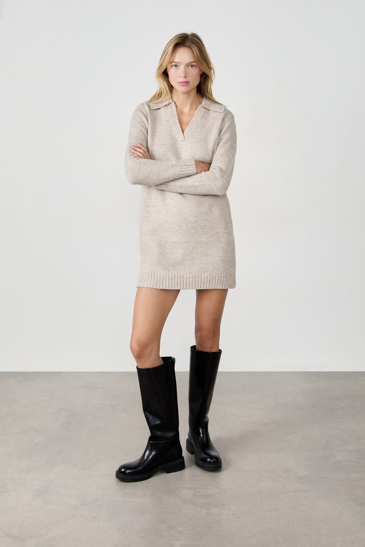 Vestido jersey con cuello en V...