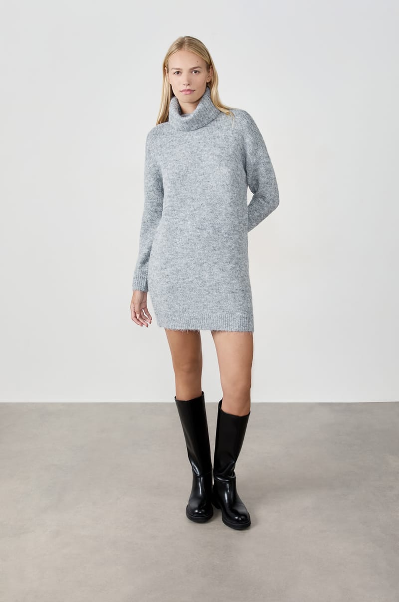 Elégante et confortable, cette robe pull longue est confectionné en maille. Munie de manches longues et d'un col roulé, elle offre une allure réconfortante et intemporelle.