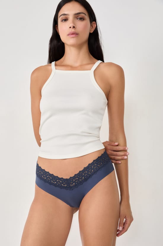 Hipster V-shape en microfibre et dentelle;${refinementColor}