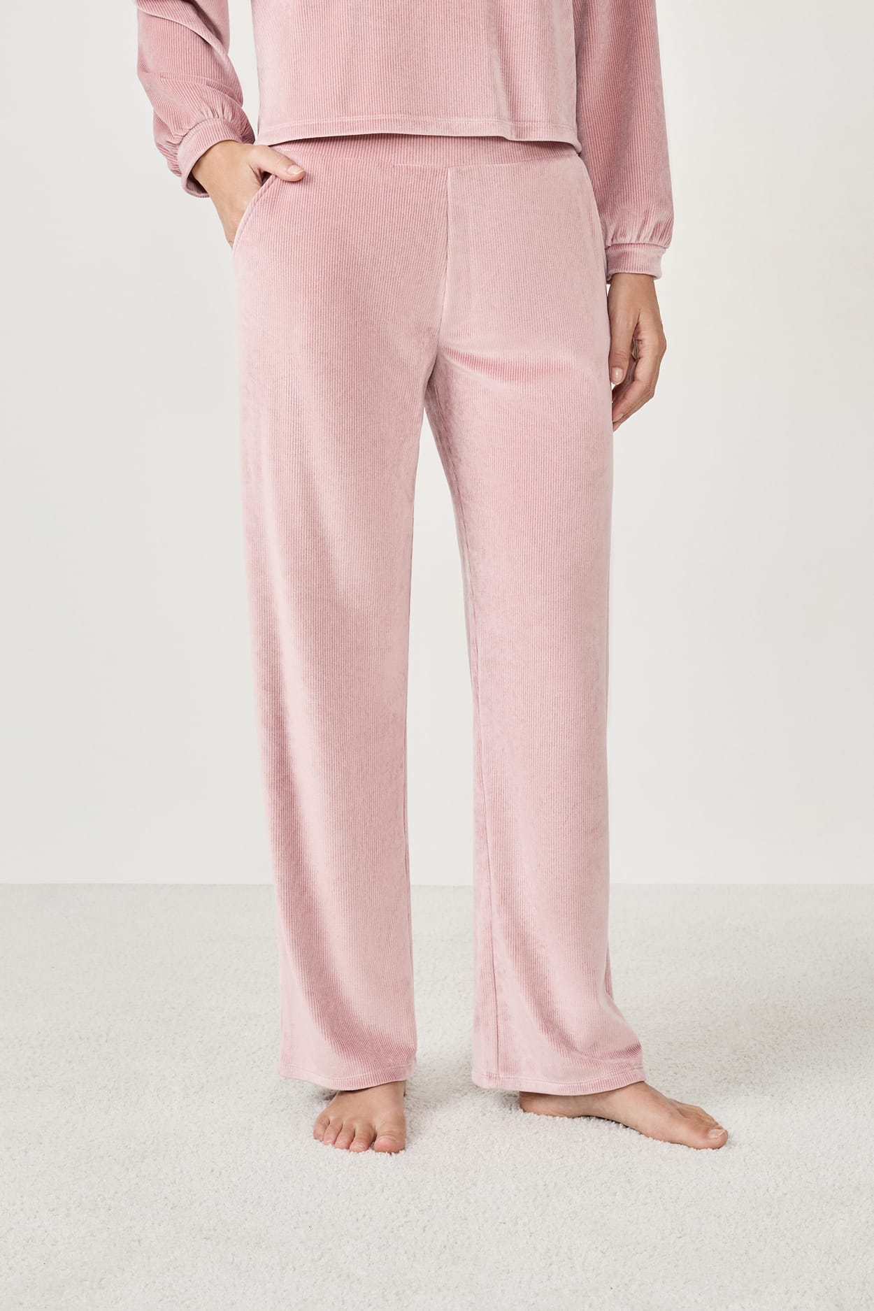 Ce pantalon de pyjama est revisité avec un effet velours. Sa coupe large est idéale et apporte une note cosy....