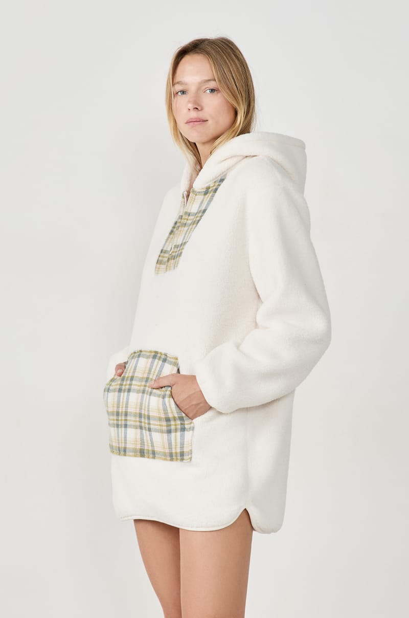 Doux et réconfortant, ce sweat à capuche de pyjama est twisté avec un motif à carreaux sur le col et la poche....