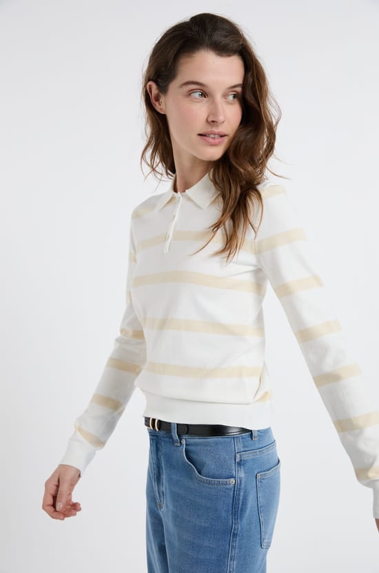 • Pull col polo à manches longues à rayures;${refinementColor}