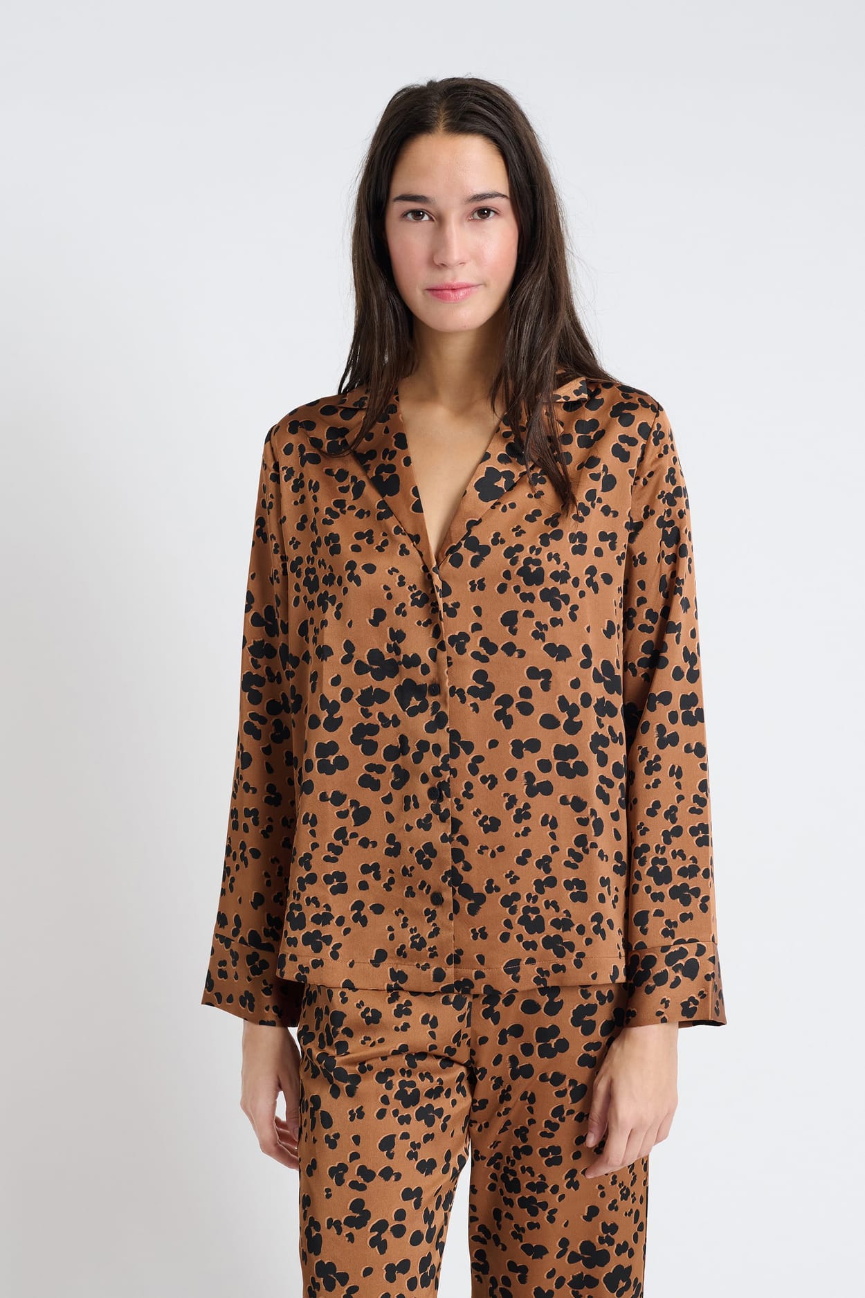 Cette chemise de pyjama joue la carte de l'originalité et de l'audace avec son motif tacheté. Elle est munie d...