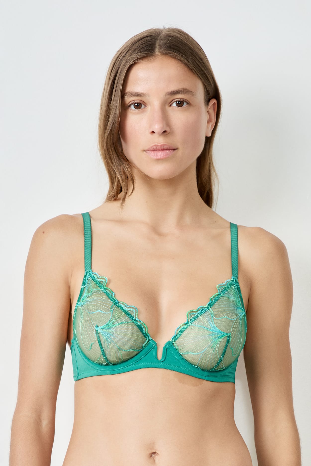 Notre expertise corsetière s'exprime avec précision à travers ce soutien-gorge corbeille, où la broderie se pose dé...