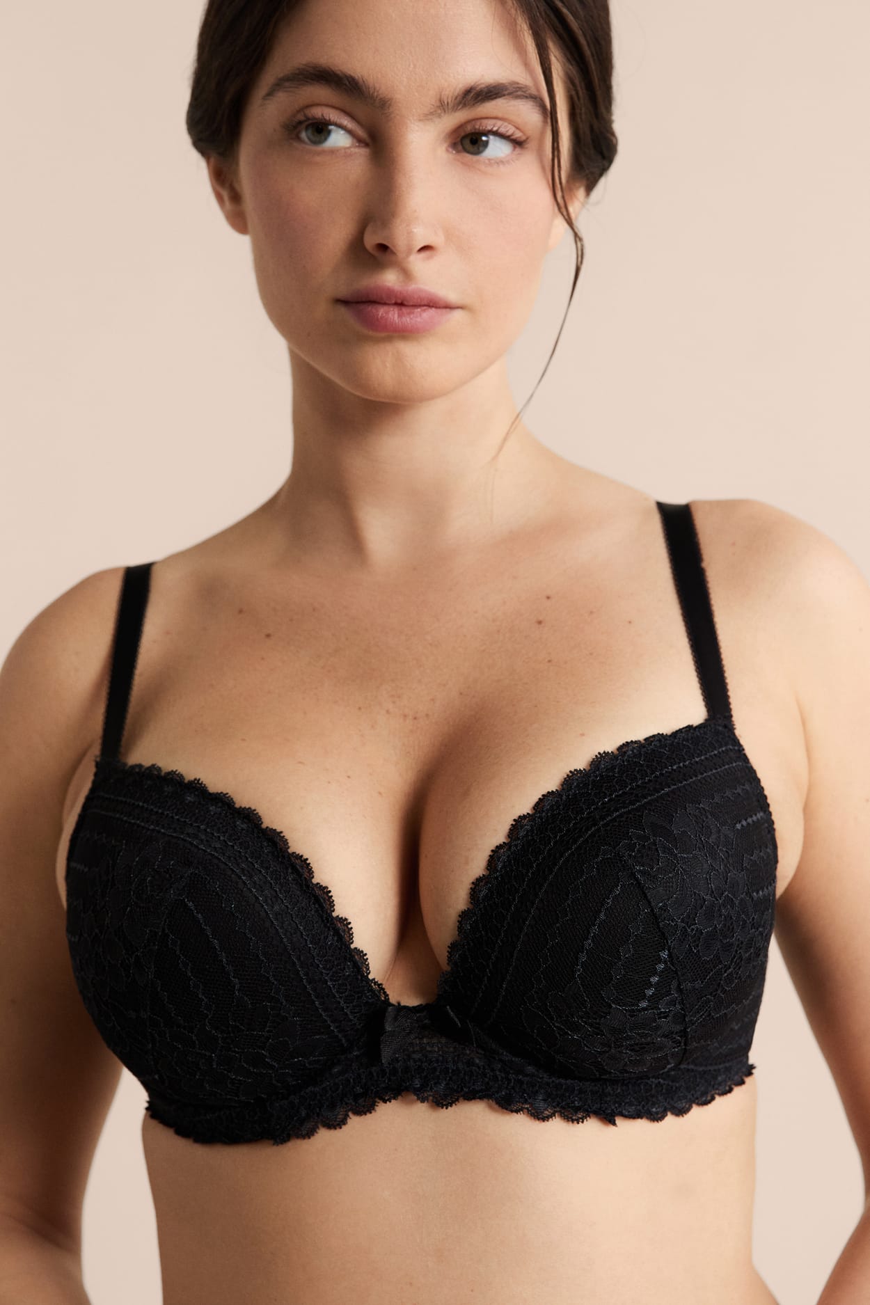 Grâce aux coques fines de ce soutien-gorge en dentelle fleurie, le décolleté est naturellement sublimé. • Classique N°5...
