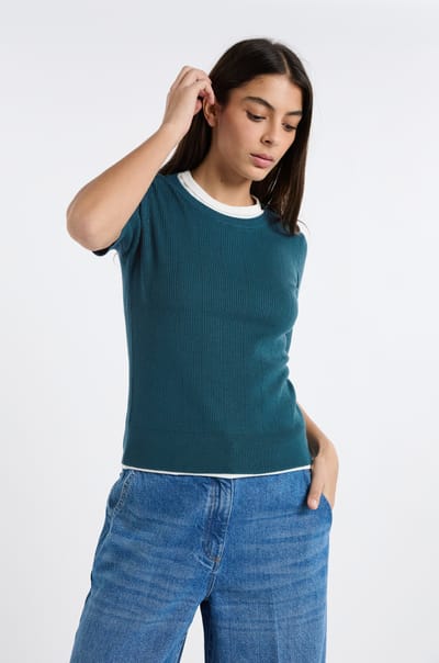 Pull manches courtes ceinturée;${refinementColor}